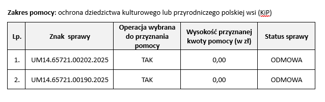 Operacje wybrane do przyznania pomocy mieszczące się w limicie środków przeznaczonych na udzielenie wsparcia w ramach naboru wniosków nr 4/2025, CSOB nr 376 699